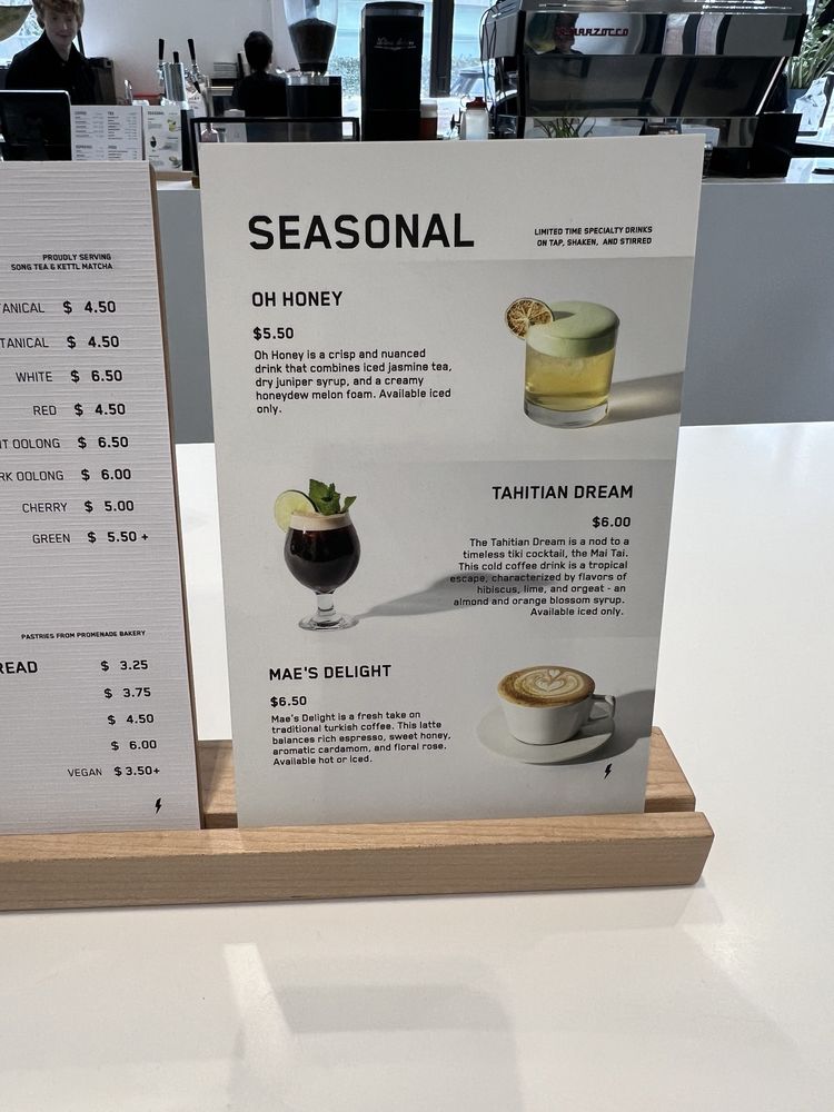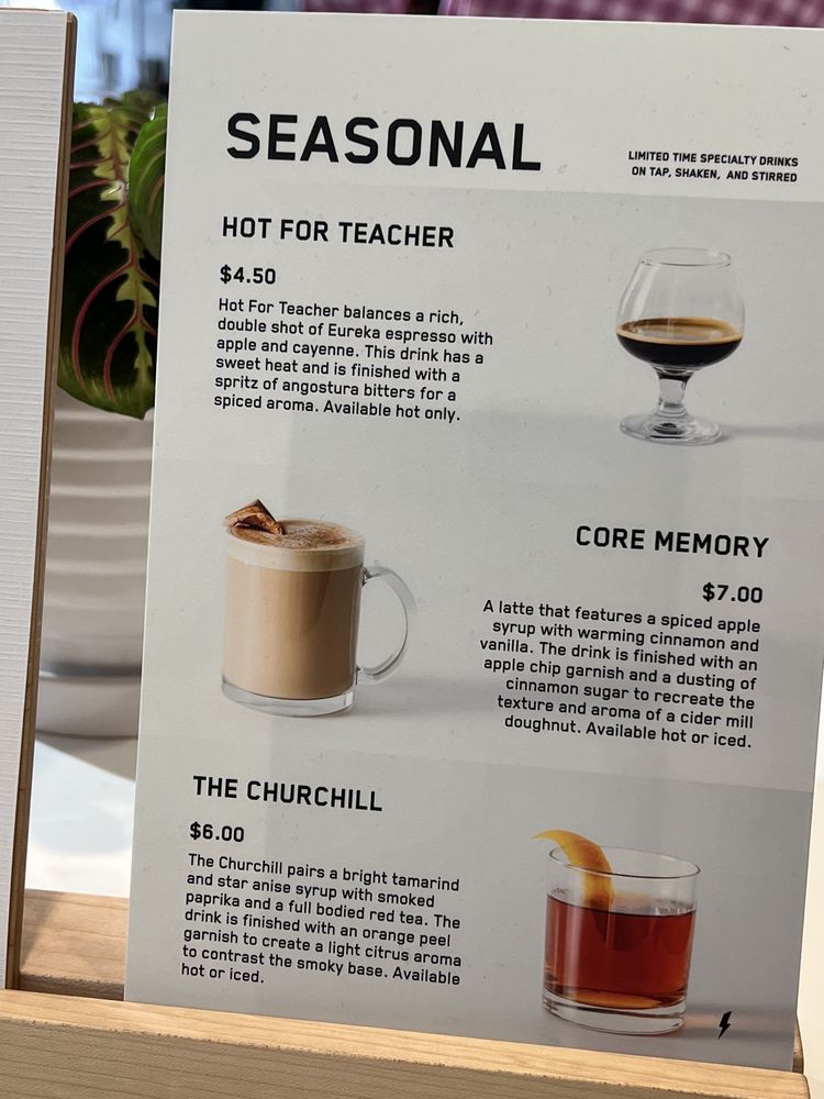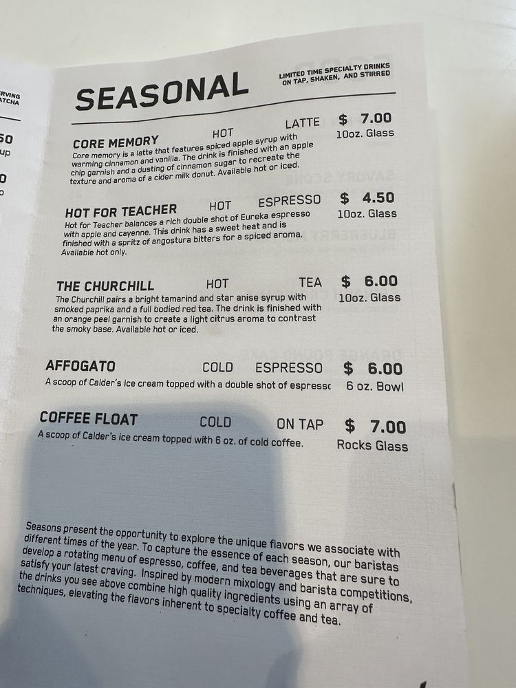 A combination of steamed oat nog and oat milk, topped with a mulling spice cold foam, and garnished with a candy cane and stroopwafel. Available hot or iced. Add espresso.